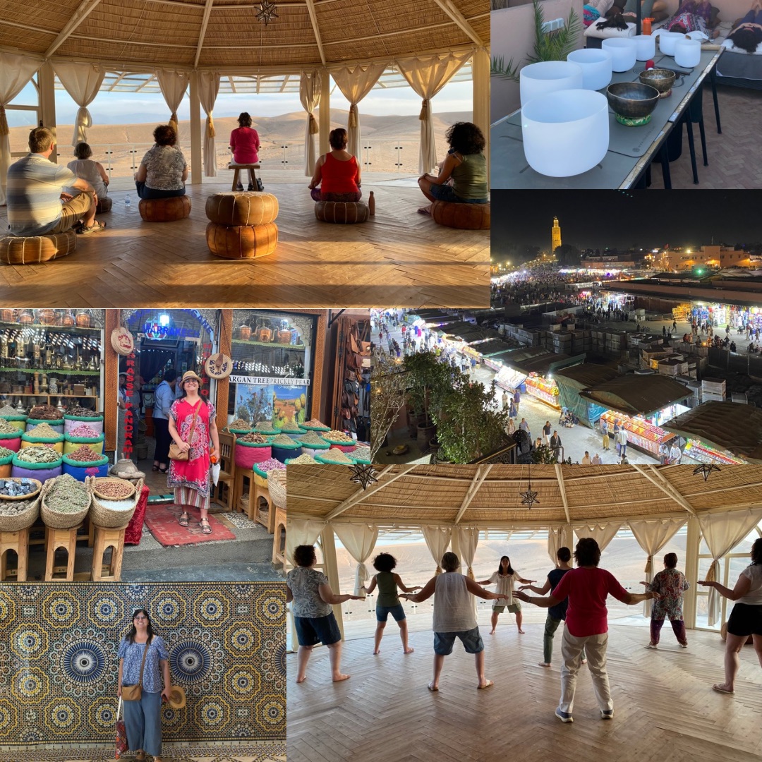 The recent retreat in Marrakesh with Michelle was a truly an unforgettable experience. The Riad (Guest House) was beautiful and comfortable, blending traditional Moroccan charm with modern comfort. Every detail was thoughtfully arranged—from the delicious, fresh local food to the variety of enriching activities such as guided meditations, sound baths, Tai Chi and Yoga sessions. Plus cultural excursions through the vibrant souks and the desert.